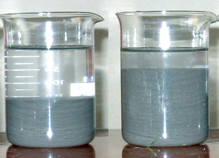 添加PCAS前后黃泥和粉煤漿灰懸浮效果添加PCAS后壘積效果濟二煤礦注漿站